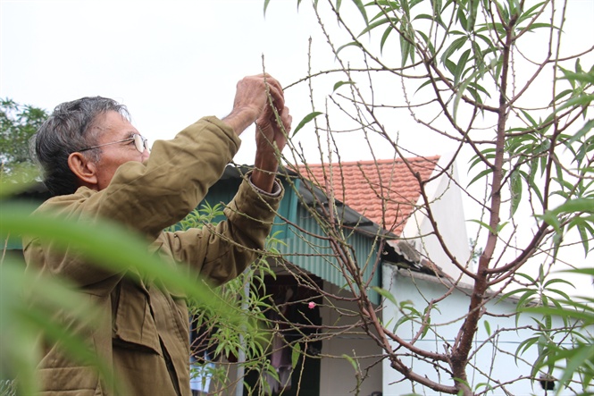 Ông Nguyễn Khắc Toàn cố gắng chăm sóc những gốc đào còn sống sót với hy vọng vớt vát được chút ít