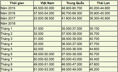 Thống kê giá heo hơi Việt Nam – Trung Quốc – Thái Lan từ năm 2015 đến tháng 9/2018