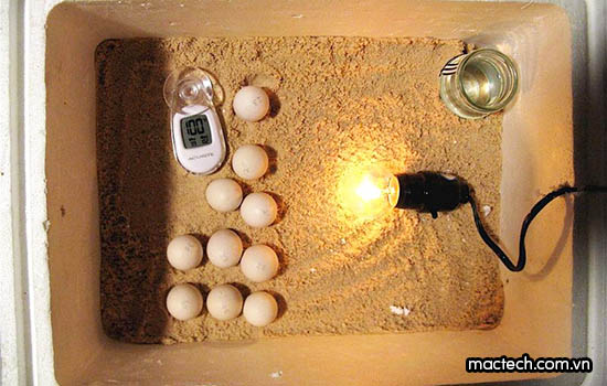 - Dùng nhiệt kế đo nhiệt độ trong thùng xốp. Nên đo từ vị trí xa bóng đèn nhất đến vị trí gần. Khu vực nào đạt được nhiệt độ 37,5 - 37,8 độ C thì đánh dấu lại vì đó là khu vực đặt trứng để ấp. Nếu nhiệt độ cao quá cso thể chọc một vài lỗ ở bên thành của thùng xốp để nhiệt độ giảm bớt. Nếu nhiệt độ thấp quá thì nên đổi bóng đèn có công suất cao hơn một chút.