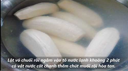 Lột vỏ chuối rồi ngâm vào tô nước chanh và muối khoảng 2 phút