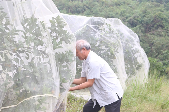 Ông chia sẻ: “Phủ màn cho cây cam sẽ ngăn được sâu bọ, bướm chích, đảm bảo sản phẩm sạch, chất lượng, không độc hại.