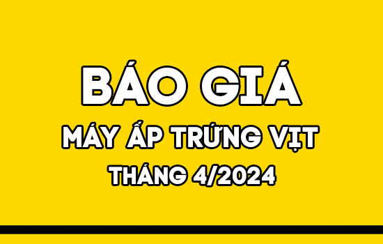- Báo giá máy ấp trứng vịt trên là giá niêm yết chưa gồm phí vận chuyển. Công ty sẽ hỗ trợ miễn phí vận chuyển trong nội thành Hà Nội.