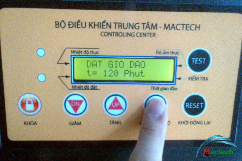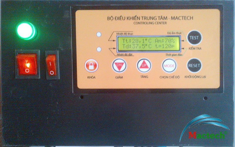 Bảng điều khiển trung tâm của máy ấp trứng Mactech 600 trứng.