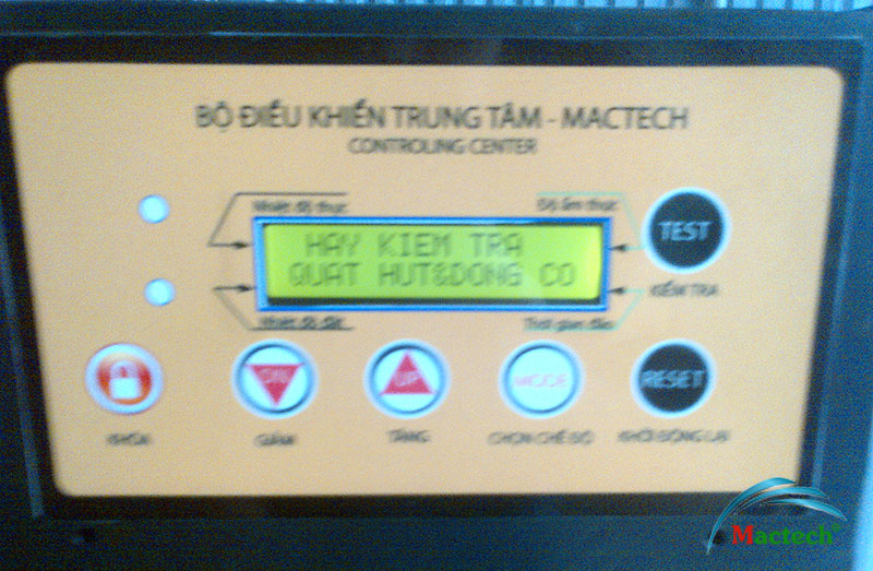 Sau khi ấn nút RESET màn hình hiển thị HÃY KIỂM TRA QUẠT HÚT & ĐỘNG CƠ