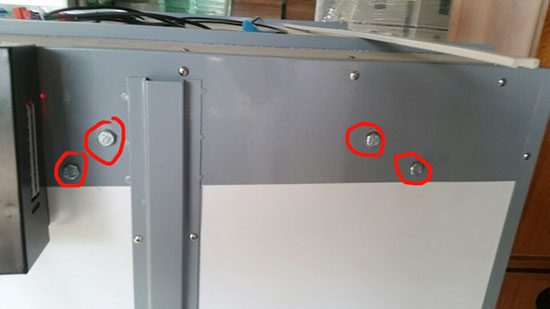 Bên ngoài ta tháo 4 con ê-cu đánh dấu đỏ là động cơ được tháo rời. Về phần dây điện ta tháo hộp điều khiển ra sau đó rút dây động cơ là xong.