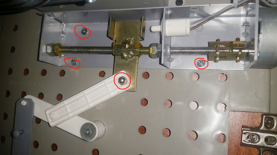 Đối với máy ấp trứng công nghiệp tháo động cơ cũng rất đơn giản. Bên trong ta chỉ cần tháo con bu-lông nối con chạy với thanh truyền như hình dưới.